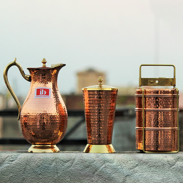 According to Ayurveda, water stored in a copper jug has the ability to balance all the three doshas in our body, (vata, kapha and pitta) and it does so by positively charging the water. Storing water in a copper vessels works as a purification process. It also helps maintain body’s pH (acid-alkaline) balance. There are also numerous health benefits that have been attributed to drinking water in copper glasses.