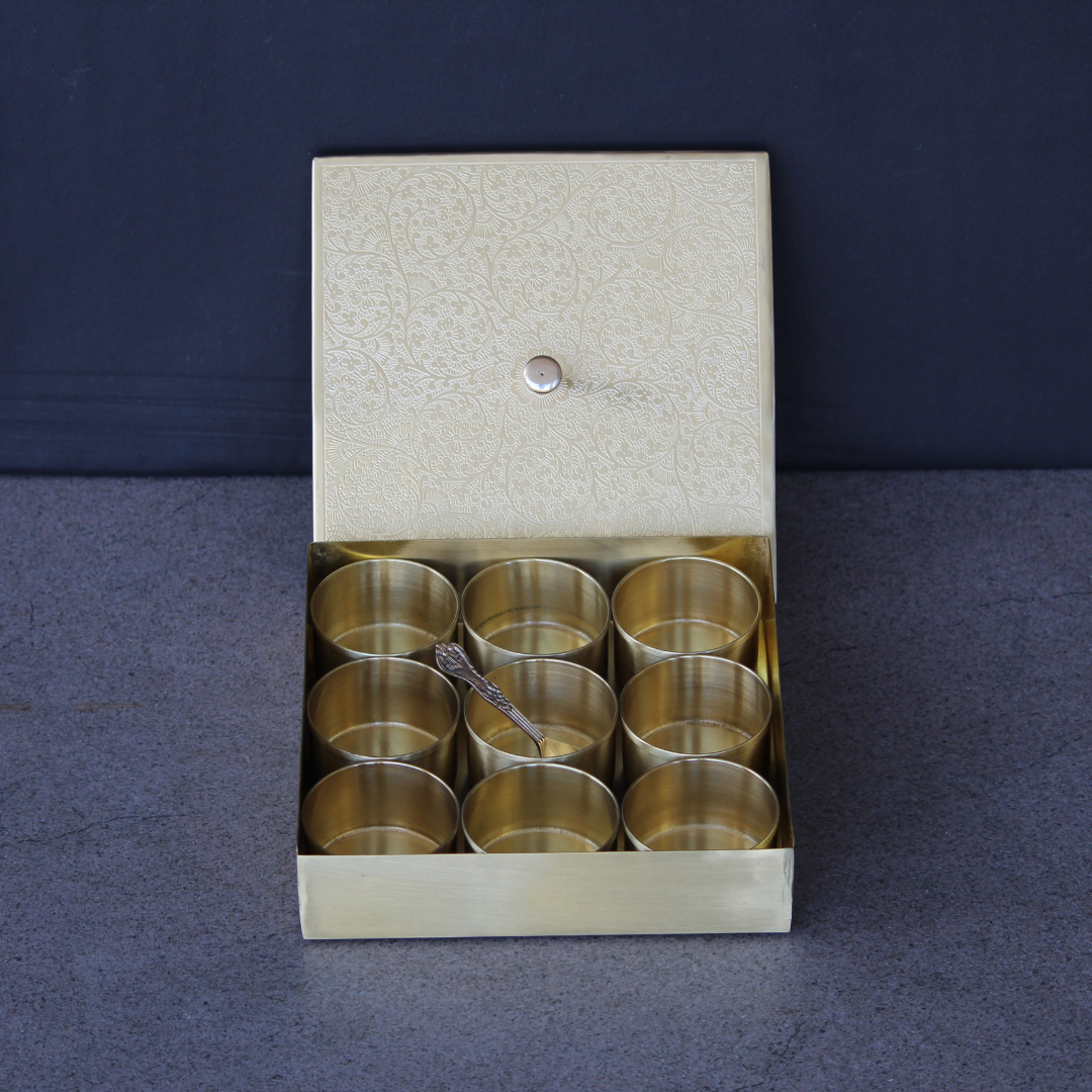 Brass Masala Daani / Spice Box is an absolute must-have in every kitchen. It can be kept on the counter-top or the dining table, and made out of brass, it will always come to your rescue when you need to find something quickly.
